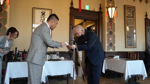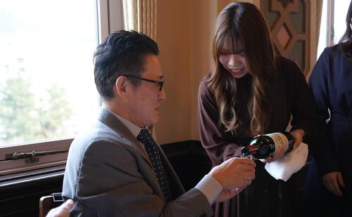 食事会も終盤、社長、専務から従業員へ
