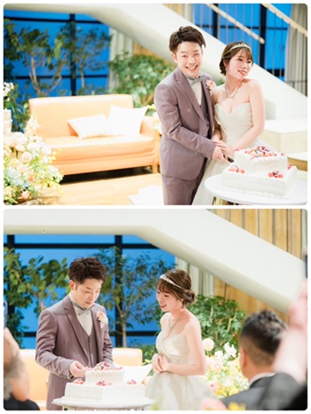 良いムードで式が進行され、いよいよ二人によるケーキカットです♬