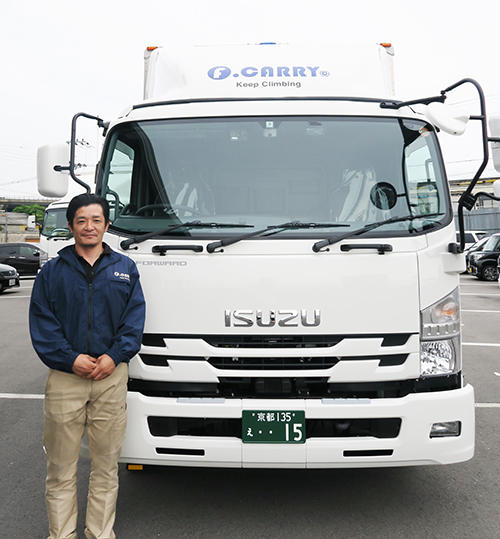 昨年、エフキャリーに入社したKさん(入社一年と一か月)が担当ドライバーとして、京都から日本各地のお客様のもとへ荷物を配達いたします。