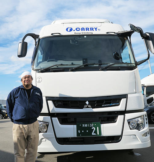 10t車の迫力に負けないくらい、良い体をしているI氏が、