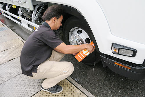 無事故・無違反を祈念して、日本酒でお清めいたしました。