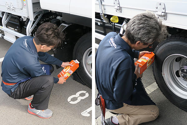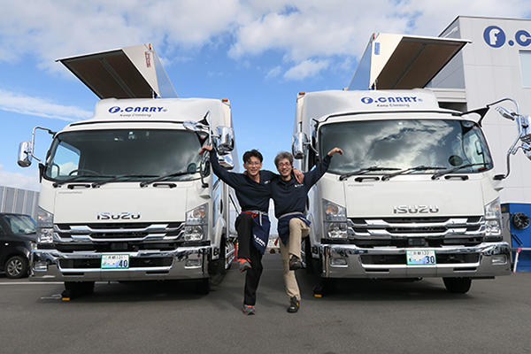 秋晴れのもと、新車トラックを2台同時に納車いたしました。